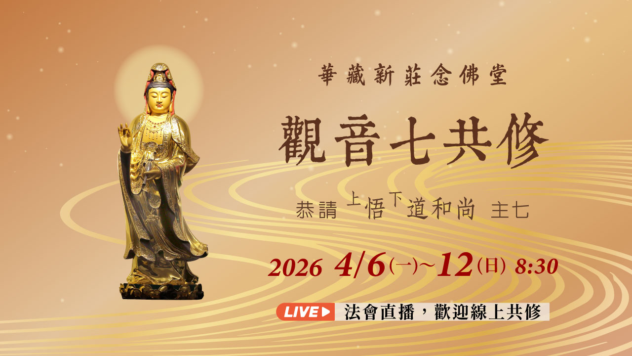 4/6~12晚上6:00新莊念佛堂恭請悟道和尚啟講《觀世音菩薩耳根圓通章》,網路直播,歡迎大家線上聽講,同霑法益。