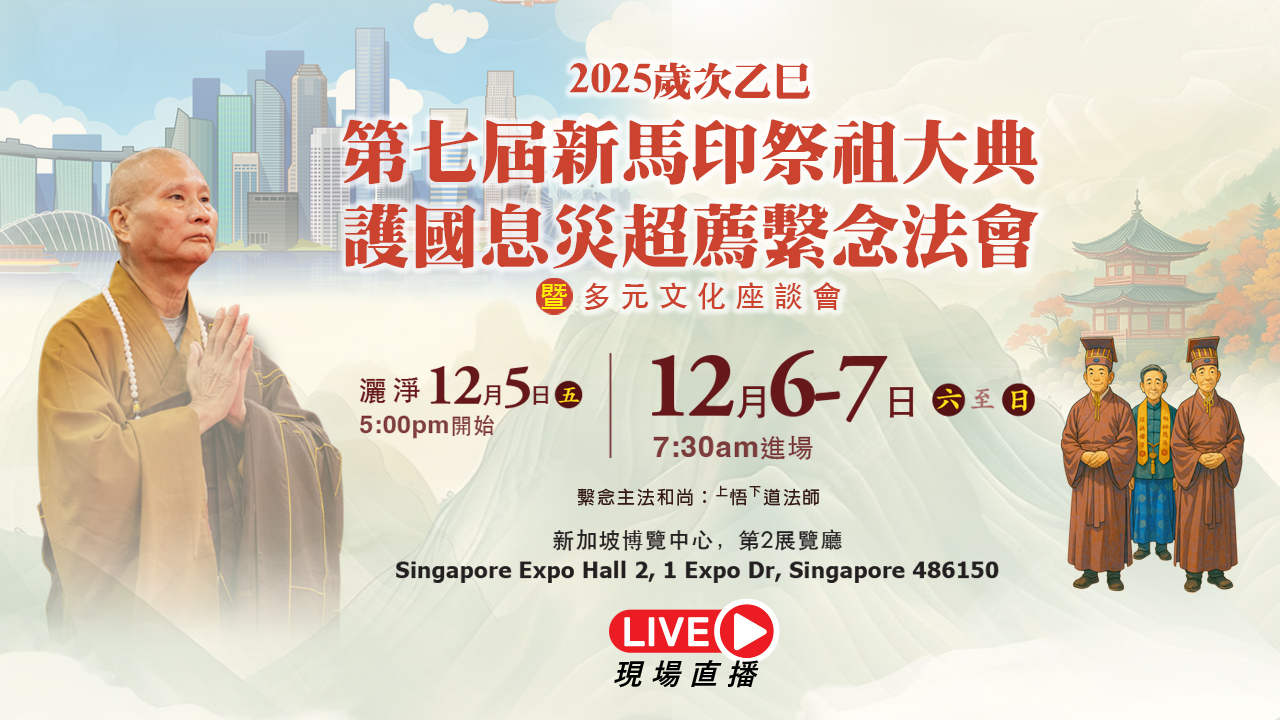 8月8至10日香港佛陀教育協會啟建恩師 淨空老和尚圓寂三週年追思繫念法會暨2025乙巳中元尊師祭祖大典,恭請悟道法師主法。
