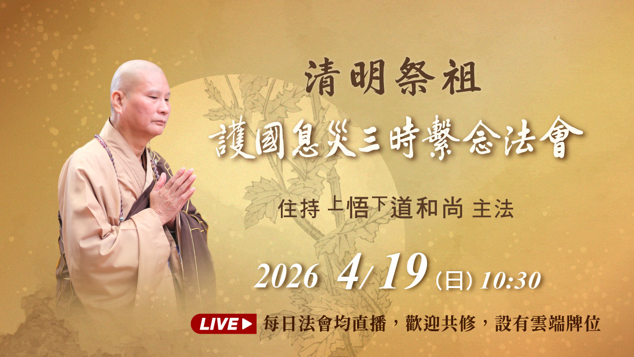 4月5日清明護國息災三時繫念法會及6~12日觀音七共修,恭請 悟道和尚主法主七,法會及觀音七共修現場直播。歡迎線上同步共修。相關資訊請參閱…