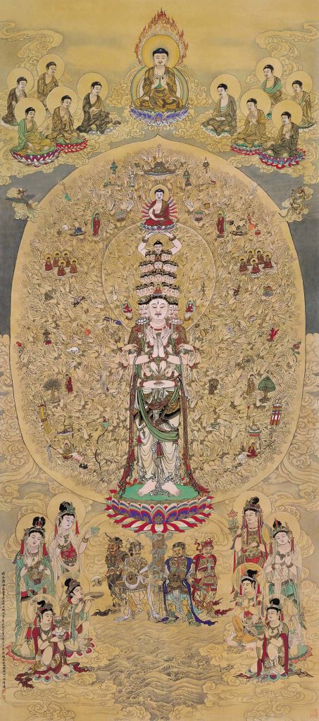 《法華經.普門品》云:「應以佛身得度者,觀世音菩薩即現佛身而為說法;應以辟支佛身得度者,即現辟支佛身而為說法」,菩薩三十二應身,三十二是講三十二大類,每一類都是無量無邊。有人問,觀世音菩薩到底是男的還是女的?我們可以看看觀世音菩薩變相圖,裡面男女老少統統都有,有現出家、有現在家,全是觀世音菩薩。真正是無處不現身,全都是觀世音菩薩變化的,所謂隨類善巧方便示現,千處祈求千處應。