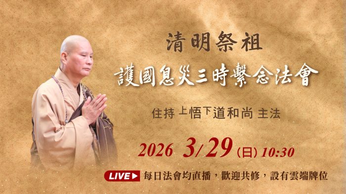 4月3日、5日恭請悟道法師主法,當天網路直播,歡迎大家線上共修。
