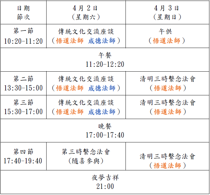 傳統文化座談會日程: