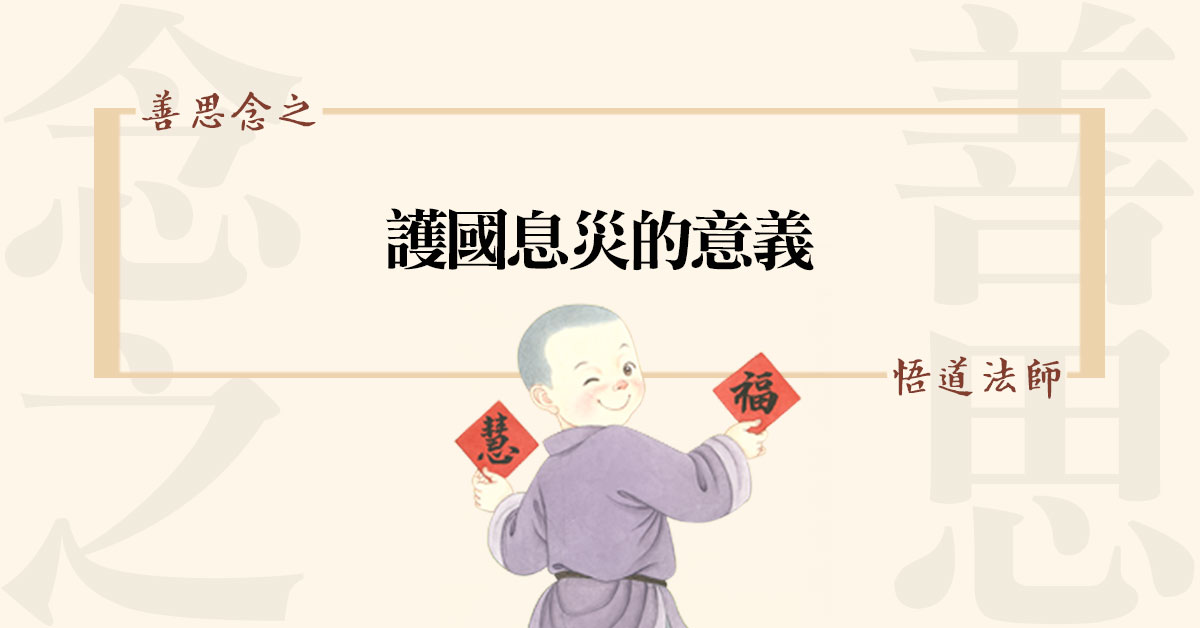 現在這個世界上,可以說天災人禍不斷,我們總是時時刻刻要有危機意識。我們淨老和尚早在二十幾年前就提倡護國息災,他的開示我們不敢忘記。為什麼做護國息災法會?如果這個世界沒有災難,講息災就沒有必要,就是災難很多才要息災。所以護國息災是長期的,因為災難多,愈來愈嚴重,護國息災就不能中斷。